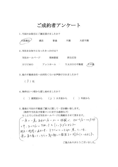 この度は、弊社でのご成約ありがとうございました。 短い時間の中で、色々お願いしたにも関わらず、快く対応して頂きありがとうございました。 年末年始のお忙しい中ですが、楽しみながら新生活に向けて、ご準備ください。 今後ともよろしくお願いいたします。